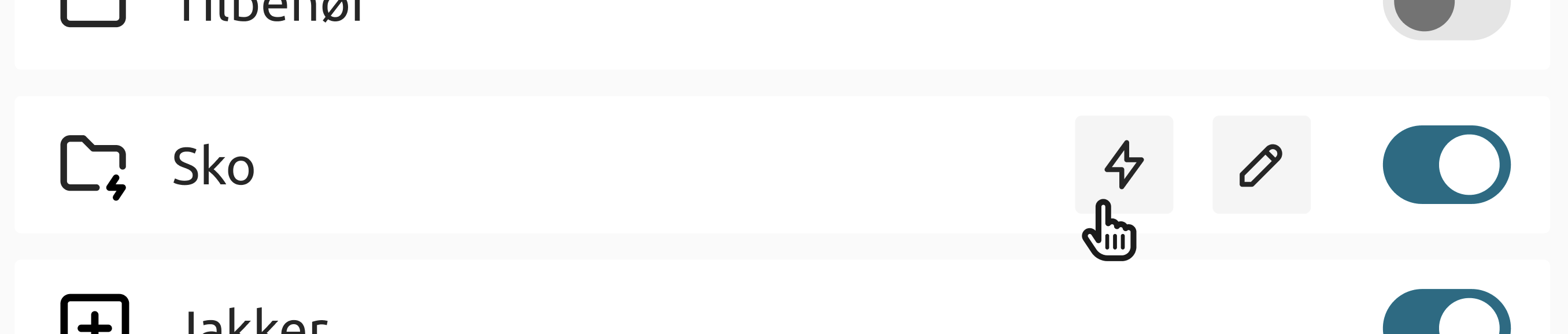 - In the side menu, it is displayed with a folder icon with a lightning bolt.