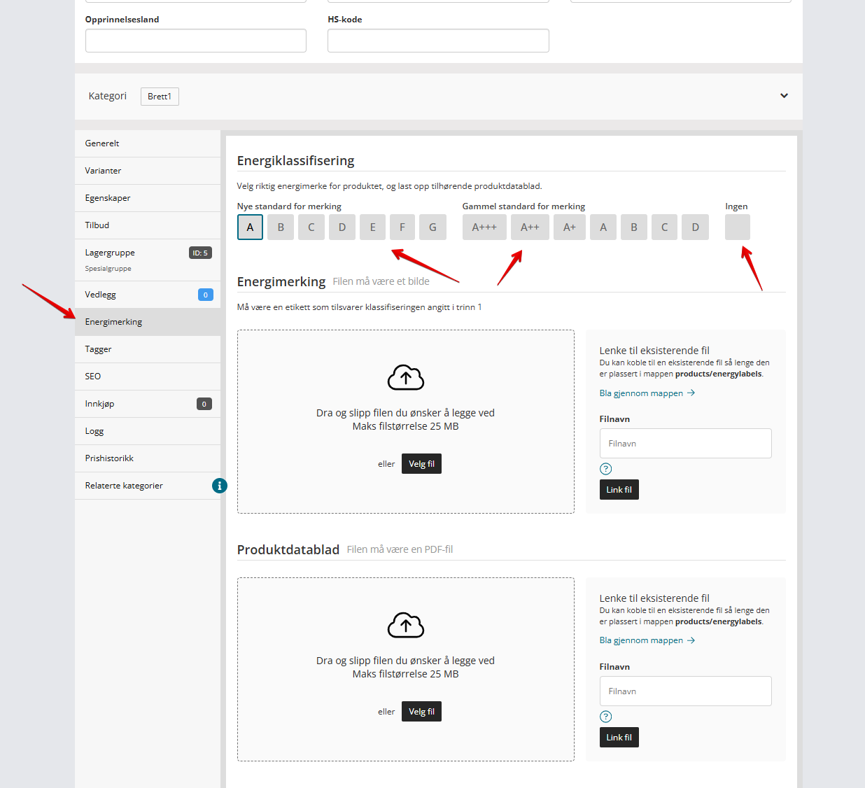 - Go to the product you want to add energy labeling to.