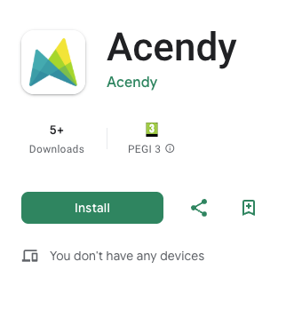 Du må først laste ned Acendy-appen fra App Store (for iOS) eller Google Play (for Android).