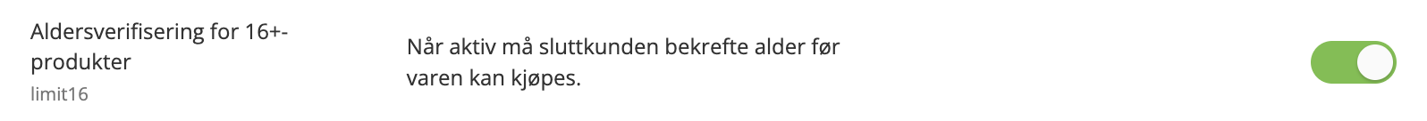 - Slå på taggen "Aldersverifisering for 16+-produkter"