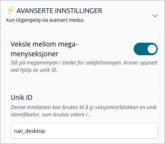 - Slå på "Veksle mellom megameny-seksjoner