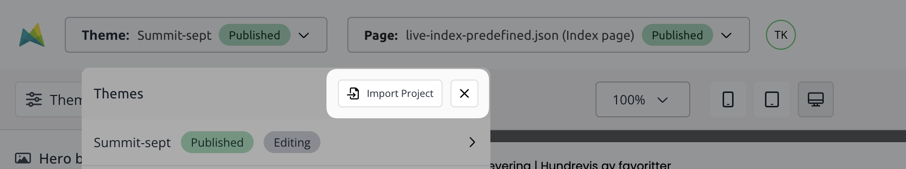 Har du noen gang designet en kul side i ett tema og deretter ønsket å gjenbruke den i et annet tema? Takket være eksport- og importfunksjonen kan du enkelt gjenbruke hele temaer og enkeltstående sider.