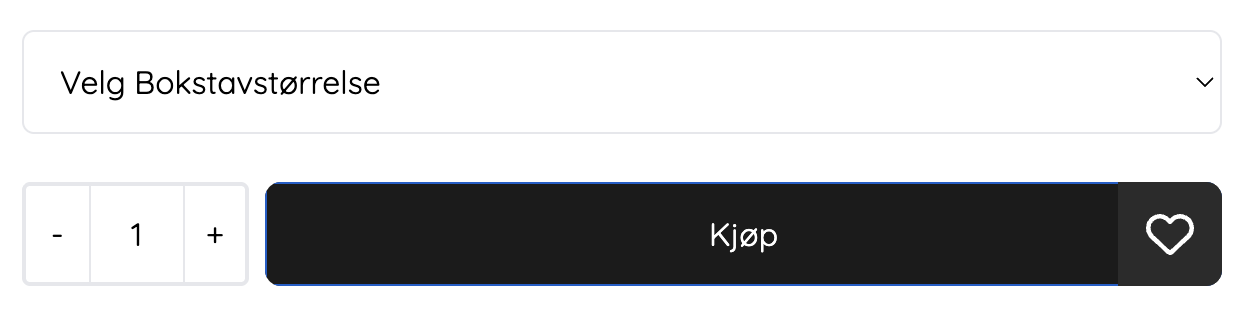 For å legge til et produkt i favoritter/ønskeliste trykker man på hjerteknappen, enten på produktboksen eller inne på produktsiden.