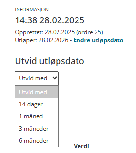 Justere verdien på gjelden, endre utløpsdatoen (utvidelse) og se hvilken ordre som er koblet opp mot den utstedte gjelden.