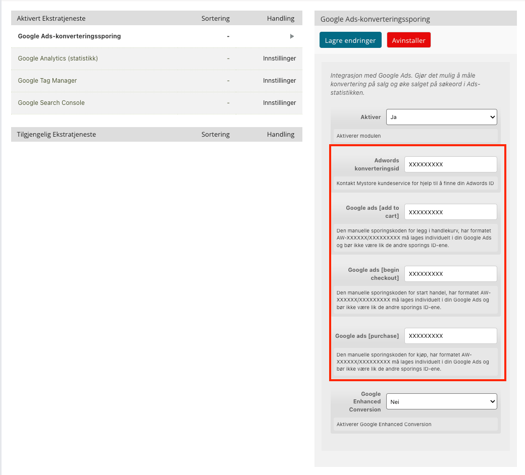 Mystore vil nå sende konverteringsdata til Google Ads hver gang en kunde gjennomfører den valgte handlingen i nettbutikken din.