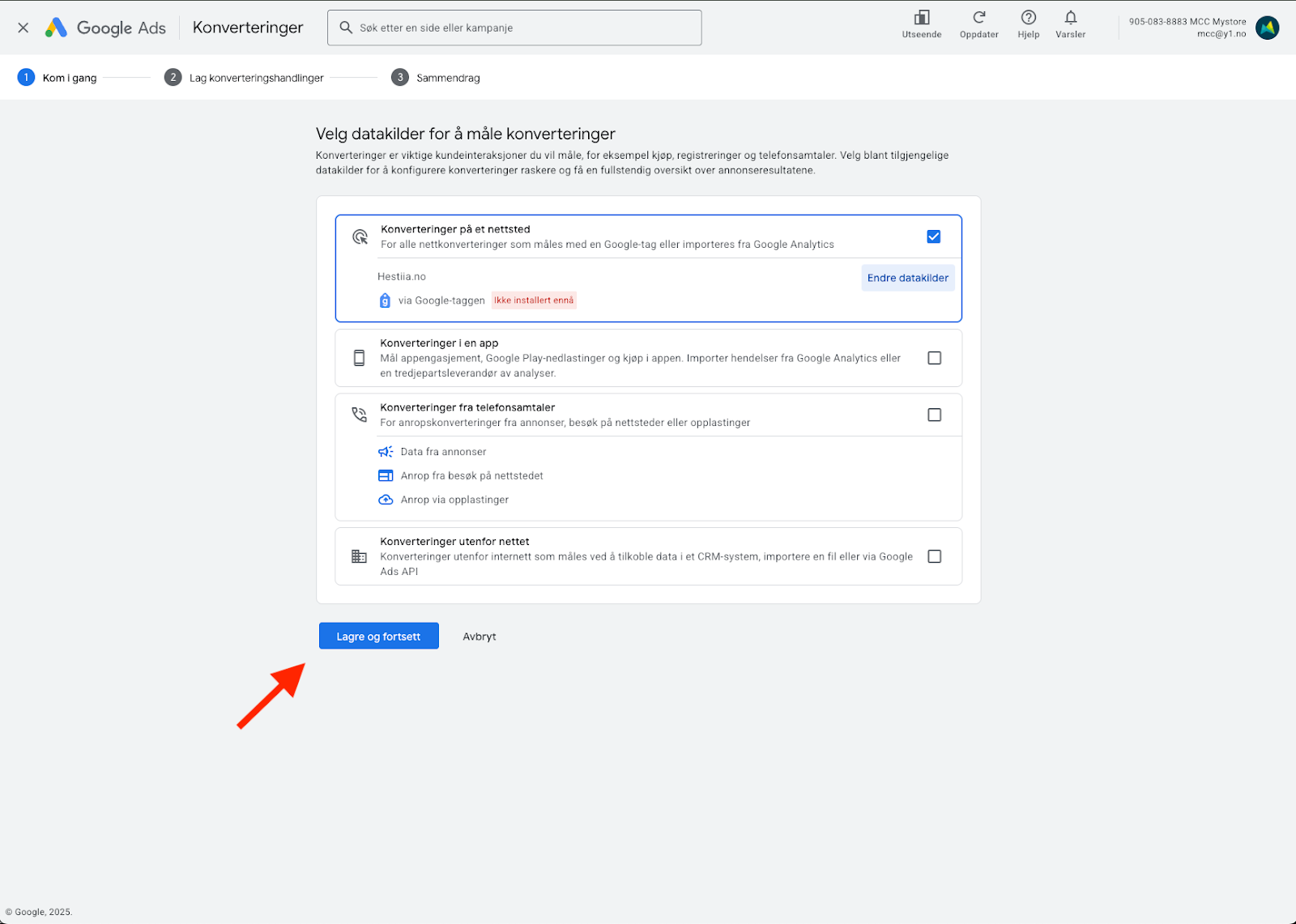 Trykk så “Lagre og fortsett”