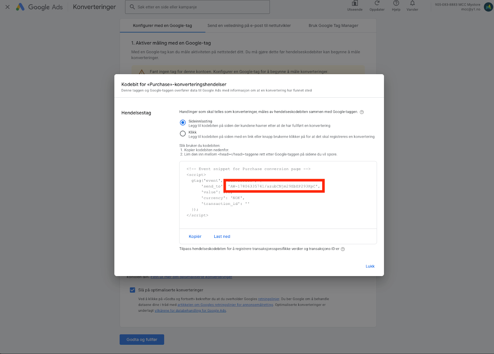 Google Ads: Oppsett av Konverteringssporing