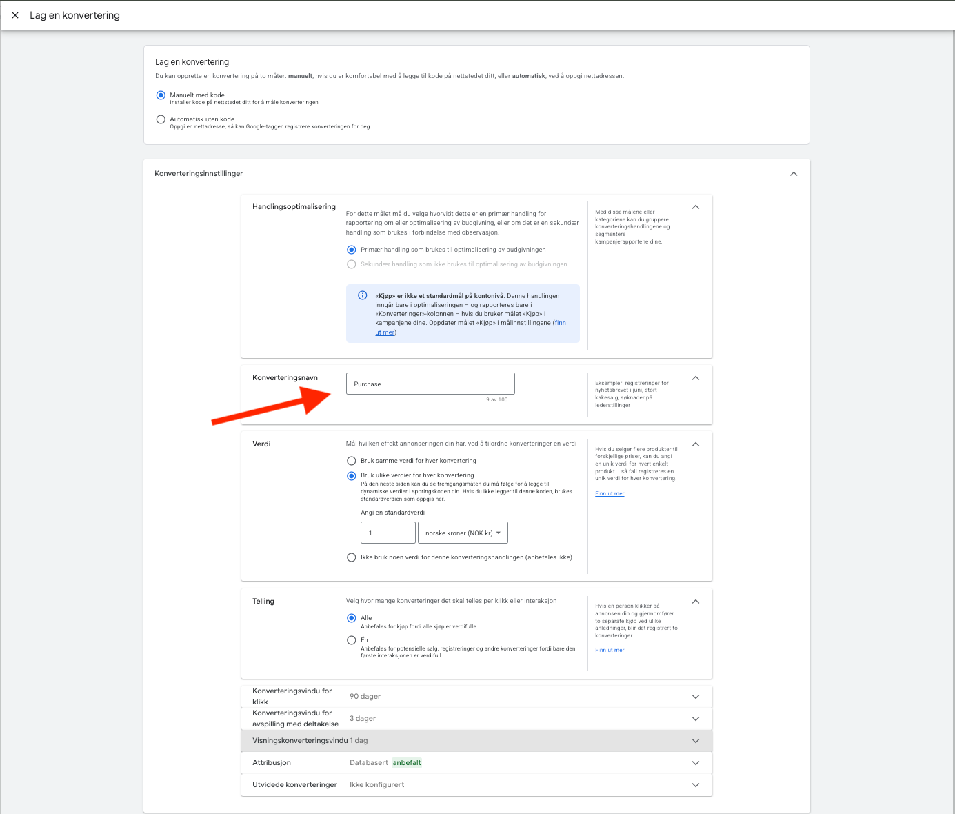 Navngi konverteringssporingen: Purchase