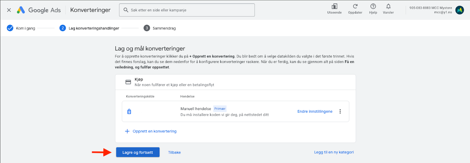 Steg 4: Lag en konverteringshandling i Google ads
