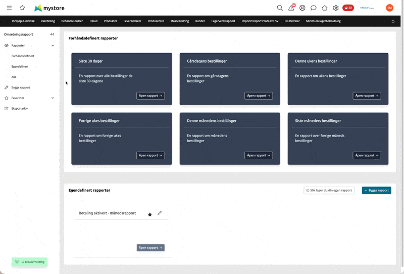 Les mer: Hvordan du lager og redigerer dine egne tilpassede visninger, finner du i artikkelen «Egendefinert Rapport / Bygg rapport».