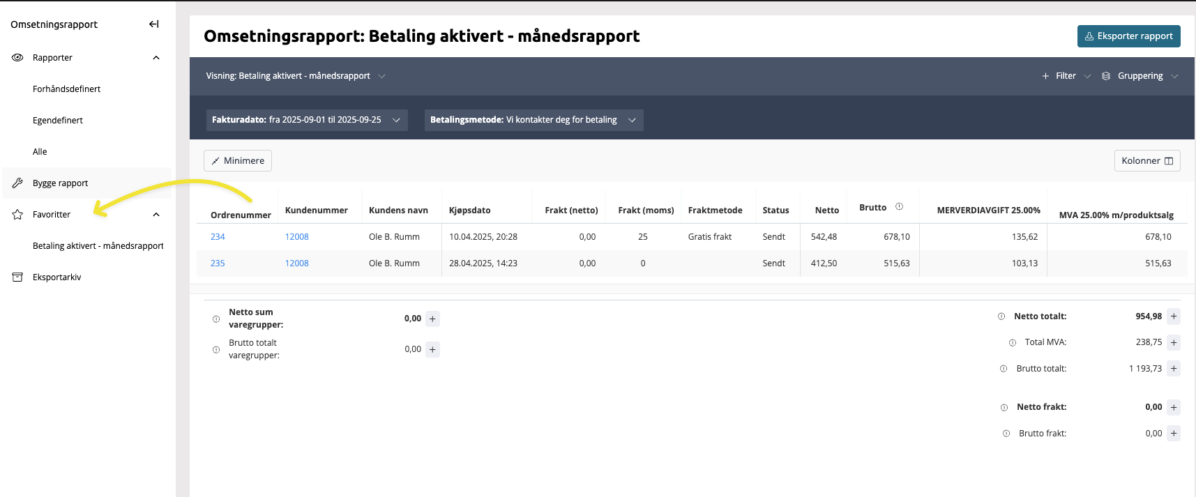 Rapporter du har merket som favoritt, får du rask tilgang til her: