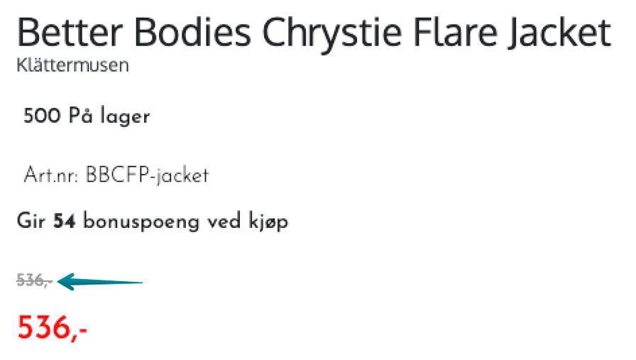 Vis som førpris(Velg “overwrite_price” i modulen for denne visningen)