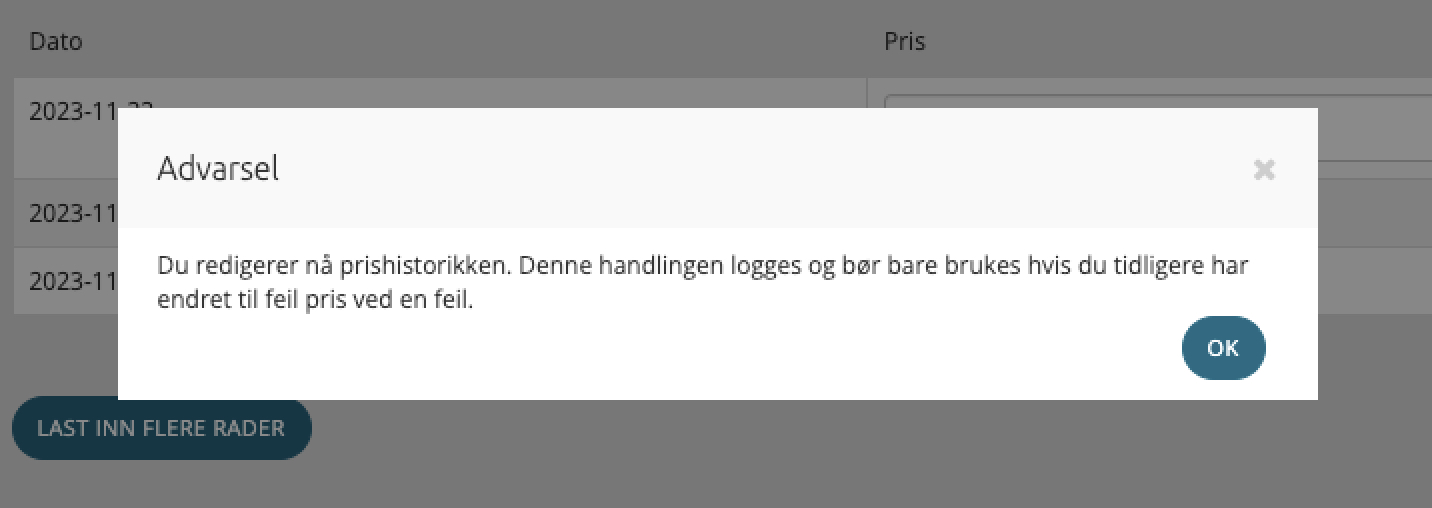 Feil kan skje og det er mulig å overstyre prishistorikken dersom man ved et uhell har justert prisen mye høyere eller lavere enn tiltenkt. Lær hvordan dette gjøres.