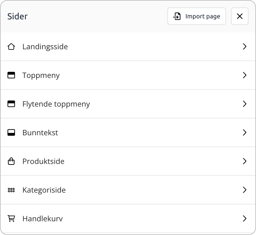 Hver tema består av flere ulike sidertyper, som f.eks landingsside og produktside.