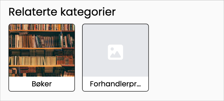 Tilordne relaterte kategorier når du redigerer produkter fra kontrollpanelet ved hjelp av den nylig lagt til fanen. Legg deretter til blokken «Relaterte kategorier» på produktsiden ved hjelp av designbyggeren. Blokken er tilgjengelig i seksjonene Produktkjøp og Kolonner.